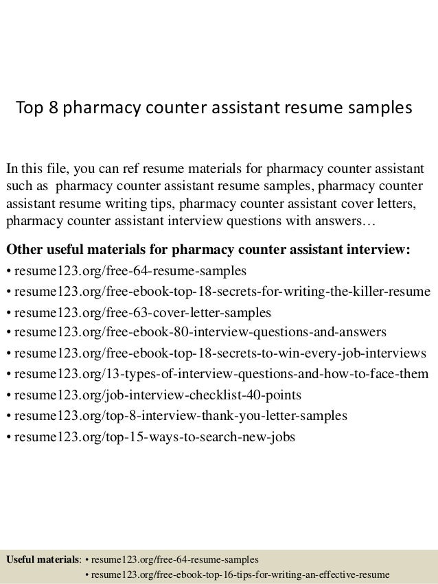 Top 8 Pharmacy Counter Assistant Resume Samples